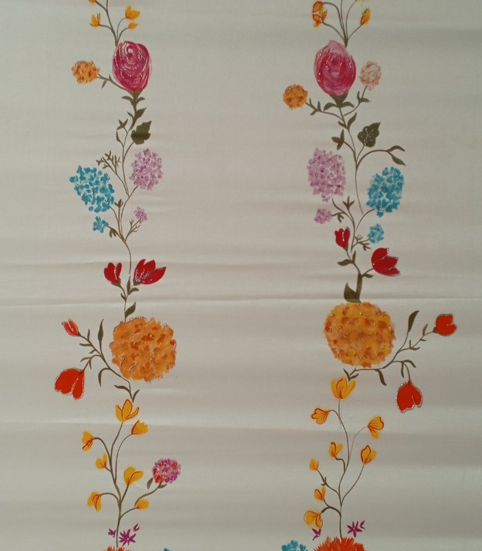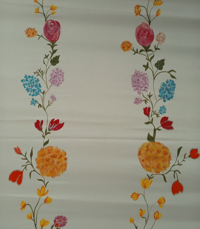 Work: Extensive Hand-painting (Across the entire fabric).