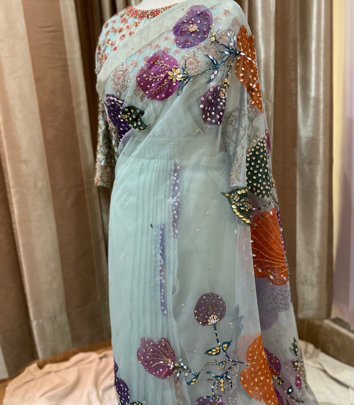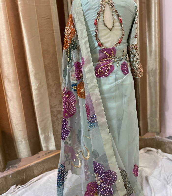 - Saree Fabric: Pure Organza (Handpainted and Embellished)