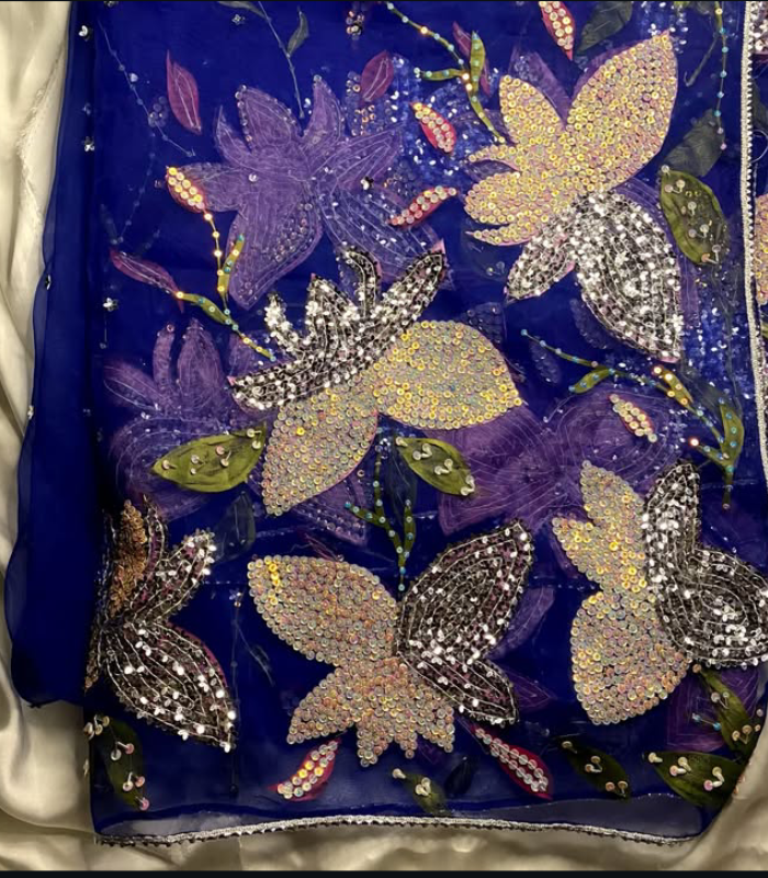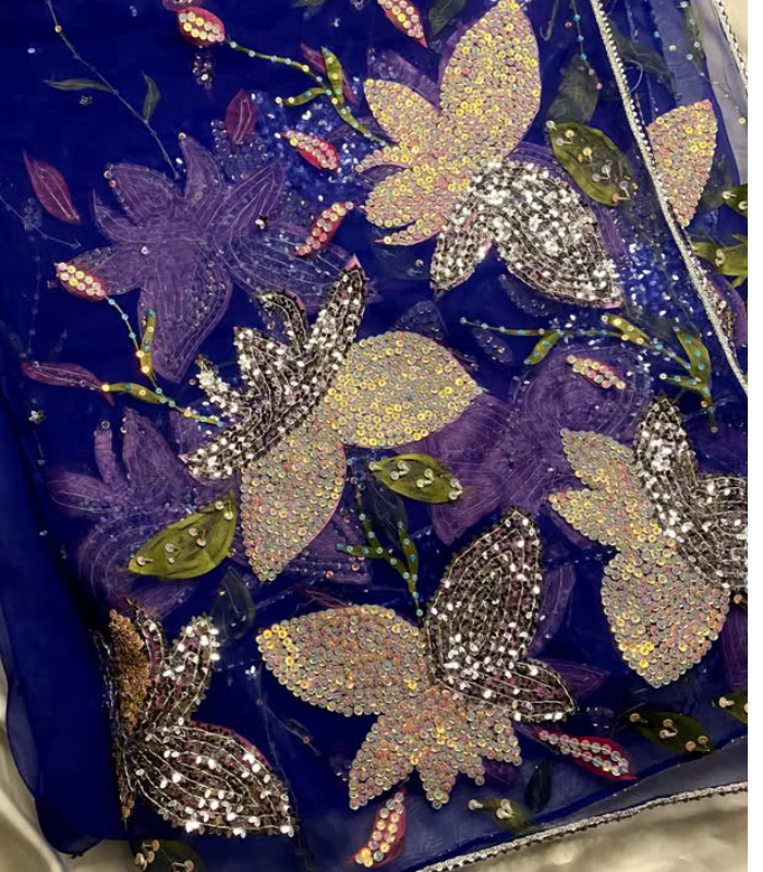 Royal Blue Heavily Embellished Organza Dupatta